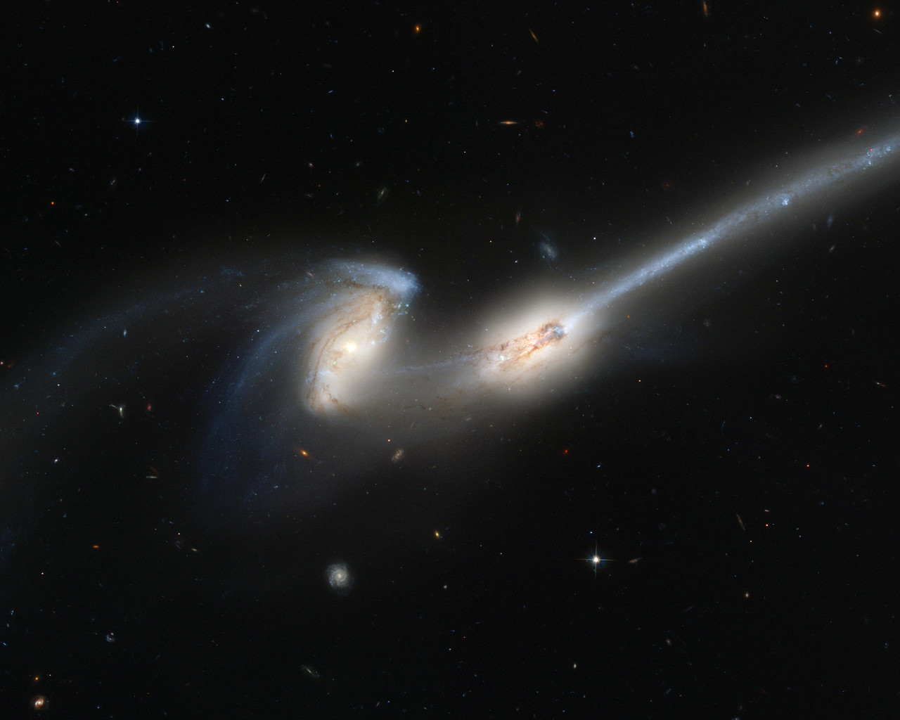-- Hubble Space Telescope has captured a spectacular pair of galaxies, located 300 million light-years away in the constellation Coma Berenices, NGC 4676, the pair will eventually merge into a single giant galaxy.